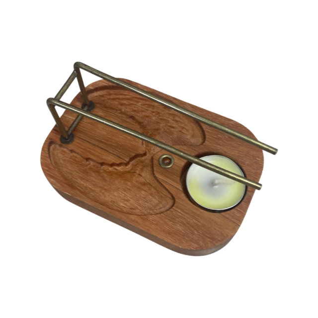 Seu uso é direcionado para suportar a defumação de Palo Santo in natura, Bastões de Ervas Naturais e Incenso Vareta.